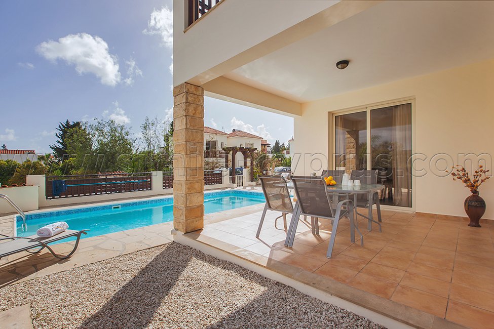 This trendy villa is located in Coral Bay. It is an ideal location for a holiday by the sea, less than 200 meters from a small, sand beaches and 650 meters from the main tourist area in Coral Bay, with lots of shops, cafes, restaurants, and taverns. The famous beaches of Coral Bay, which are awarded Blue Flag, is 15-20 minutes walk from the villa. The villa consists of three bedrooms and two bathrooms: a private swimming pool and sun loungers, large shaded terrace with comfortable furniture. Early booking is recommended for this trendy villa.